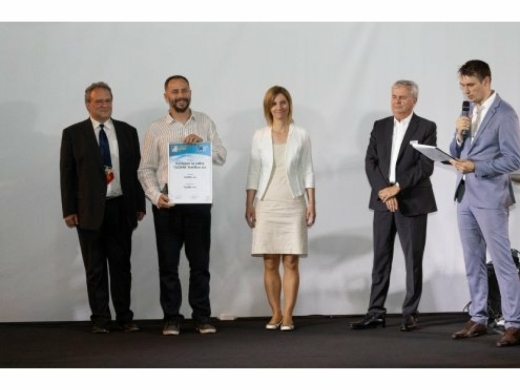 První Zlatou medaili URBIS v kategorii Obce převzal náš kolega Aleš Peka, vedoucí logistiky a technologie akciové společnosti TextilEco za inovativní kontejner na oděvy v designu tučňáka, navržený ve spolupráci se studenty VUT v Brně. Tučňák zaujal i tím, že mimo spolehlivou funkci sběrů oděvů, hraček a obuvi využívá solární energii a má i další užitečné funkce, například v oblasti přenosu dat, úschovy a vyzvedávání zásilek nebo bezpečnosti.
